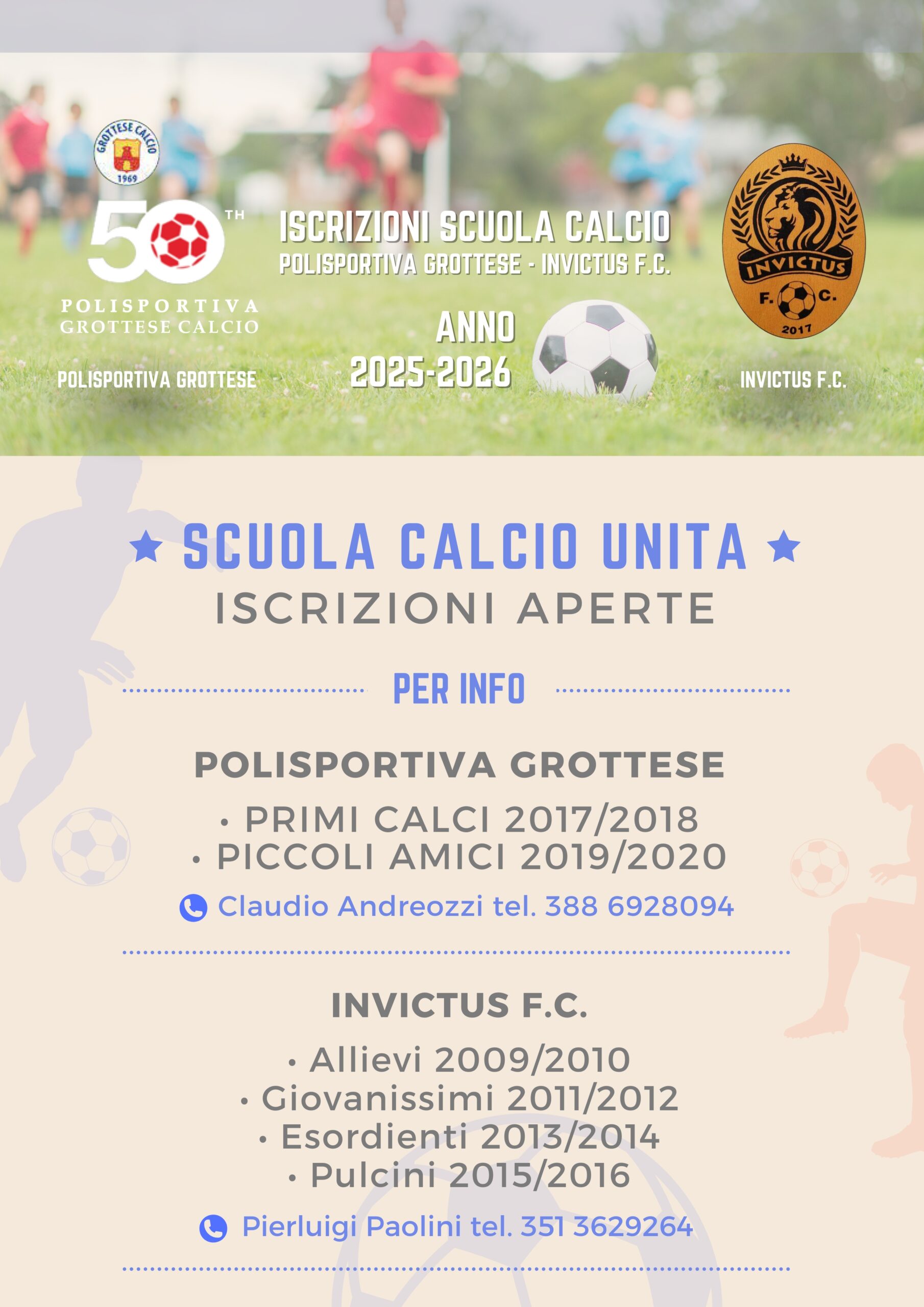 La SCUOLA CALCIO GROTTAZZOLINA di Grottazzolina sarà tenuto nell’arco dell’annata 2025-2026, con queste date di inizio e fine: